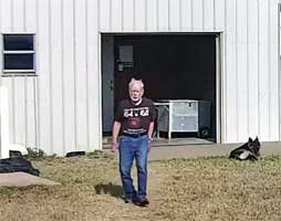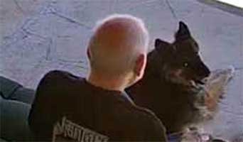 Sophie & Martin front porch • Squirrels hesitate to go pass Sophie to get to pecan tree • Sophie & new Berdoll squirrel