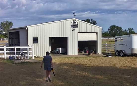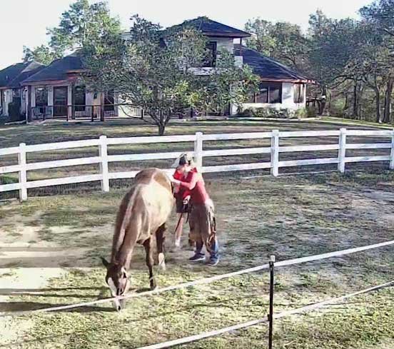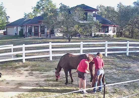 Sophie watching WCU's Kegan repairing down A/C • Roadrunner at the stable