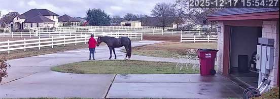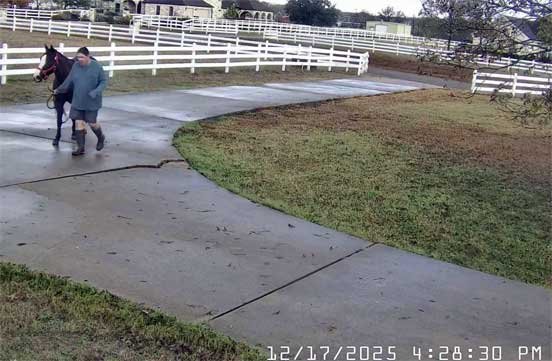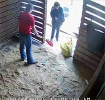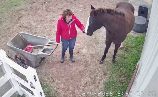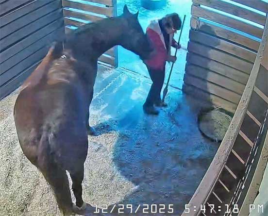 Chris in new jacket (her old one cut off by EMS on 12/17/25) briefly sweeping stable and with Christi - 12/29/25