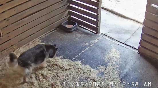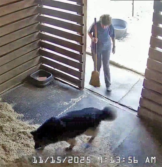 Sophie went out to the stable with Chris while Martin did his 1st half patrol 11/15/25 Sophie used to go out and chase flies in the stable all the time with Taffie and Margarita, however became intimidated by Sable.