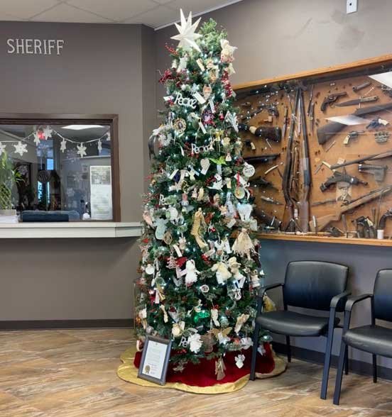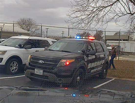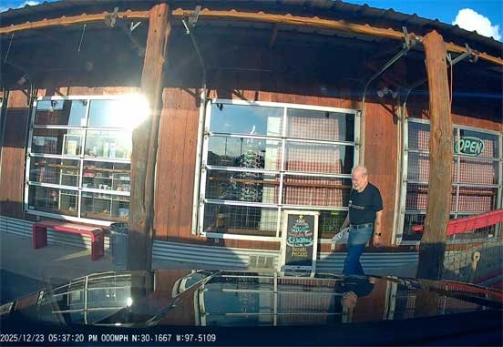 12/28/25 Martin patrol • Bastrop Sheriff's Christmas tree • wrecked patrol car from chase • Sophie looking our dirty back Telluride window.