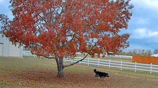 Sophie chasing birds and standoff with squirrel
