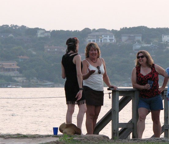 CTBA Lake Travis Flight All photos by Martin Theophilus • ©2007 Phantom Productions, Inc. August 11, 2007 QuickTime video • WindowsMedia video • News Clips • Bonus Old CTBA Trail of Lights clip CTBA Lake Travis Picnic Bob Wentz Park emergency response to drowning - video QuickTime • video WindowsMedia FAMILY SPORTS -- BALLOONING Saturday, July 26, 2008 Pick a family sport, any sport. Tennis, backpacking, boating, horses, hot-air ballooning, golf ... Hot-air ballooning? Are you serious? "It was a family thing right off," Sam and Jean Edwards say as they recount their life in ballooning with daughters Cheri White and Denise Eads, and now with grandkids. "Our youngest daughter, Denise, read in the paper there would be seven to eight balloons in west Houston," says Jean. Sam took the 11-year-old to the gathering on a Friday night, and they went back for every event that weekend. By Sunday, Sam was asked whether he was interested in helping start a balloon club. A week later, the Tejas Aeronauts was formed, a balloon was ordered and Sam became president. That casual introduction in 1975 reoriented the Edwardses' family life, leading them to give up their Galveston Bay house and water sports for life in the air. The weekend's diversion quickly captured the whole family's attention, becoming a shared passion that led to major competitions, businesses and just having fun. Hot-air ballooning now spans three generations in the Edwards-White families. Like the birds with whom they share the sky, each generation teaches the next to fly. White and her family relocated to Lakeway from Houston in 2002. Her parents followed in 2003, joining the Central Texas Balloon Association. The area club has been flying en masse over Lake Travis once every summer since 1988, with a few cancellations for weather. This year's Lake Travis flyover is scheduled for Aug 2. (See box at right for details.) Although White participated with her twin children last year, both families will miss this year's event because they'll be on separate balloon flying trips elsewhere. "Balloonists are like a big family," observes White, who flies a balloon promoting Touchstone Energy Cooperatives, an alliance of electric co-ops across the country. "I have friends all over the world that I am connected to through ballooning." Now retired from his career in the oil and gas business, Sam Edwards flies competitive races, and the couple has a small business selling passenger rides. "I used to do it for exercise, but that was 30 years ago," he says with a laugh. Jean Edwards is head crew chief — helping set up the balloon for flight, and chasing it in a truck on the ground to help pack it up after it lands. "With a husband and two daughters all flying, someone had to stay on the ground and chase," she says. "We did competition early on," remembers Jean Edwards. "Sam's instructor believed competition made more skilled pilots." Sam Edwards has earned a ranking in the Balloon Federation of America's top 10 four times in his racing career. The federation holds numerous events each year, and scoring in the top 100 through points earned running "tasks" qualifies pilots for the national championship. Assigned tasks are how balloonists compete, trying to get closest to completing the given task perfectly, such as dropping a marker on a target, akin to playing darts while riding an elephant in the air. Pilots earn more points the closer they get. New technology has changed the races. Last year, the nationals were held in Texas (Waco) for the first time and Sam Edwards notes that with GPS devices pilots there "could track time, altitude, where you went, distance. You were following a geometric shape in the sky, and not using the ground as reference." Sam Edwards trained both of his daughters to become pilots, and White now has a string of firsts as a competitive pilot. Eads was a pilot and an avid fun flier until she was diagnosed with cancer. "When we lost our daughter at 33 to melanoma," Jean Edwards says, "we were so happy we didn't put anything off, that we lived this life together." Eads' daughter, Renai, will be living with her grandparents this fall to attend college, and she'll learn the family business of ballooning. White has traveled to 25 states and seven countries to fly. This past fall, she was on one of three American teams that qualified to compete in Belgium in the Gordon Bennett Cup, the world's oldest international balloon race. Racing has earned her four firsts as a pilot: U.S. National Rookie of the Year, U.S. National Team Champion, Women's North American Champion and U.S. National Women's Hot Air Balloon Champion. Early on, White earned income from ballooning, selling passenger rides on the weekends to pay her way through law school. But it was practicing law, not ballooning, that went by the wayside. "I left to raise my babies. I haven't put a suit on since. I love being outside," she says. "My corporate ballooning job is just perfect — I work out of my home, and then in the summertime when I go do my balloon events, my children go with me and they help. They wear their Touchstone Energy shirts and crew, and work with the media and passengers. It's a really good bonding time for our family, and we get to go to lots of interesting places and meet lots of interesting people." Flying a balloon takes a large amount of preparation, people and work for an hour's flight at dawn. The uninflated balloons, gondolas, tethers and riggings are transported in the back of a pickup or in a small trailer to the launch site. When inflated by heating the air with a propane burner at the balloon's open "throat" and fully operational, the balloons stand six to eight stories high. Their weight increases from several hundred pounds stored to more than 2 tons, and the behemoths are capable of lifting a pickup into the air. Planning for a flight begins a few days beforehand. Good weather — no rain and winds of less than 10 mph — is the