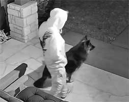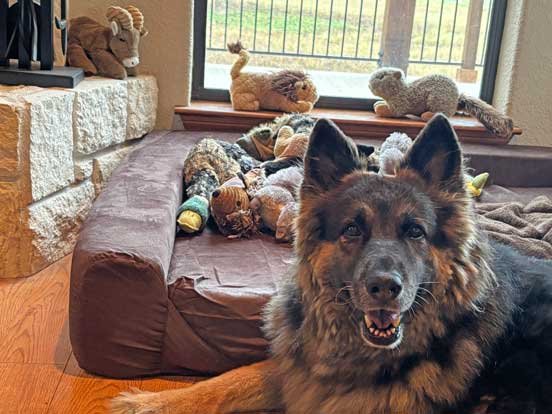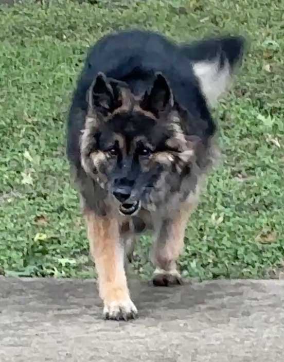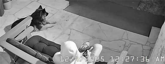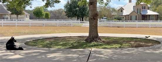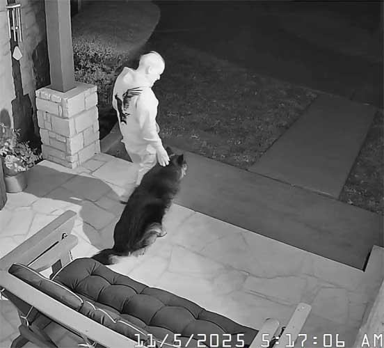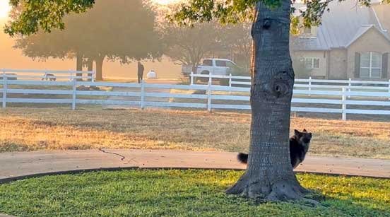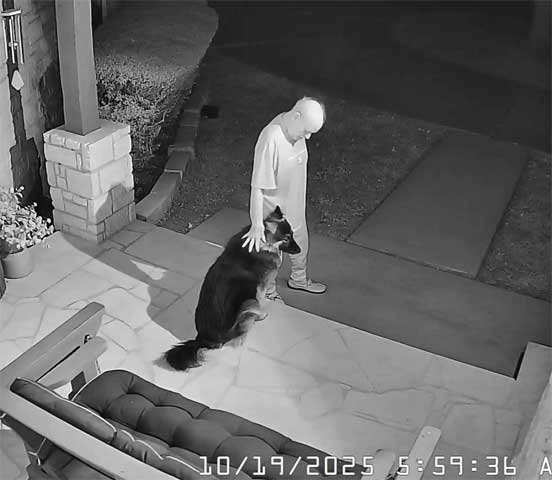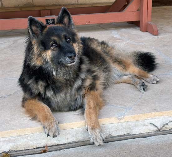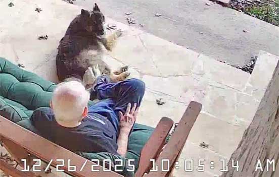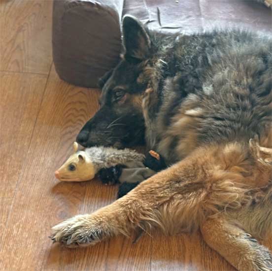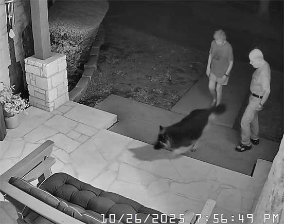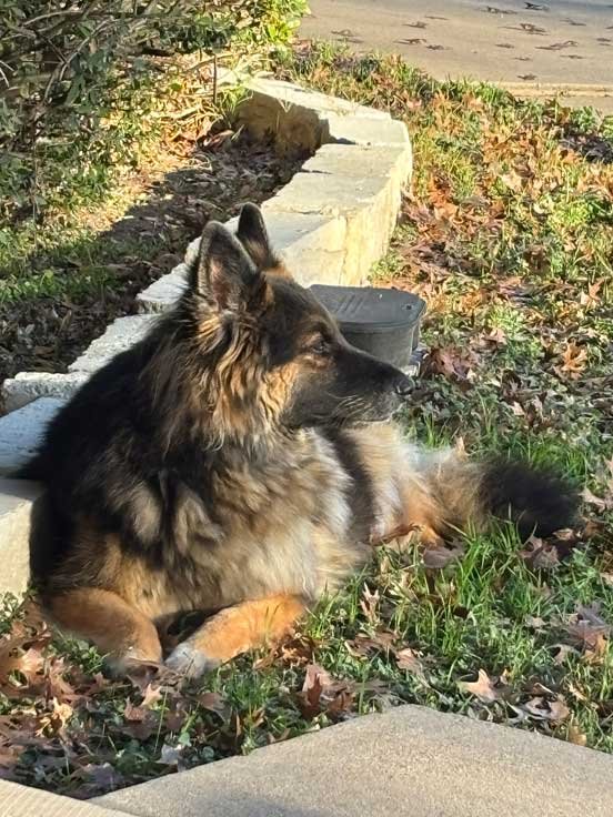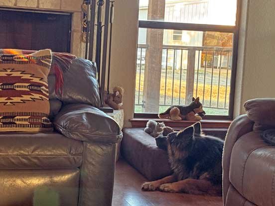 Sophie & Martin front porch • Squirrels hesitate to go pass Sophie to get to pecan tree • Sophie & new Berdoll squirrel