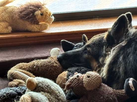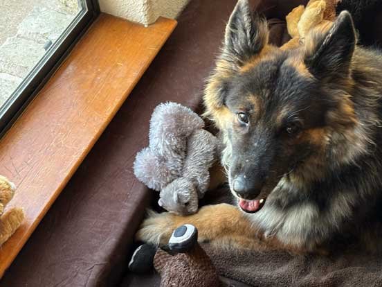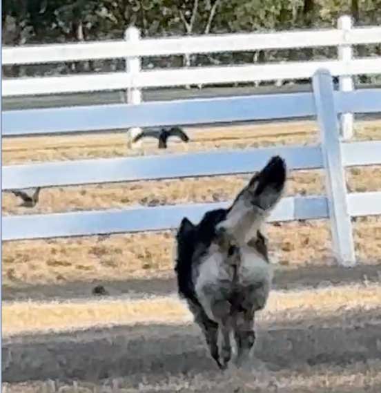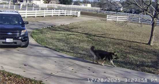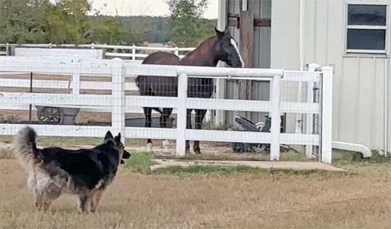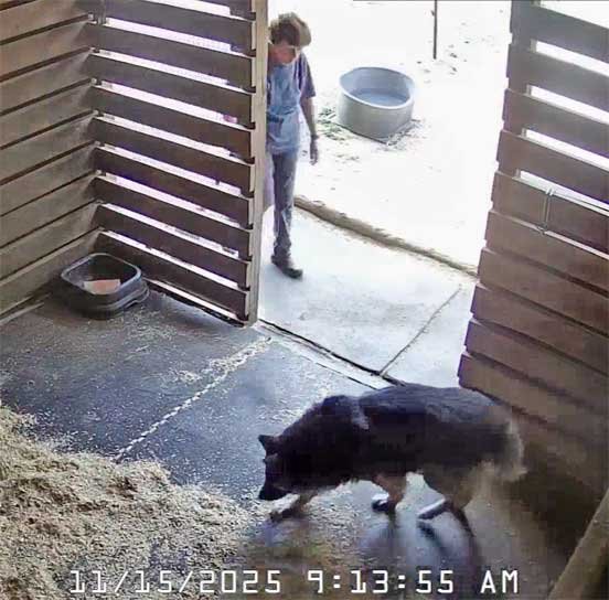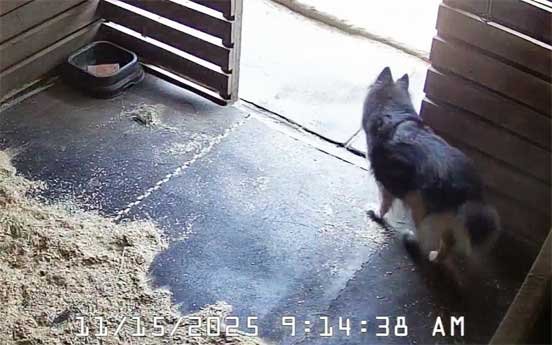 Sophie went out to the stable with Chris while Martin did his 1st half patrol 11/15/25 Sophie used to go out and chase flies in the stable all the time with Taffie and Margarita, however became intimidated by Sable. This was special as Sophie had not done this in awhile.