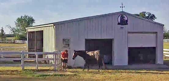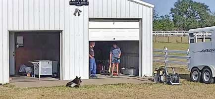 Sophie watching WCU's Kegan repairing down A/C • Roadrunner at the stable