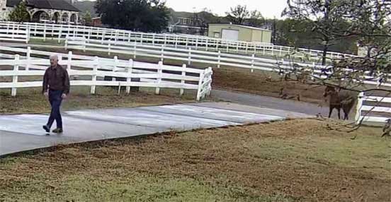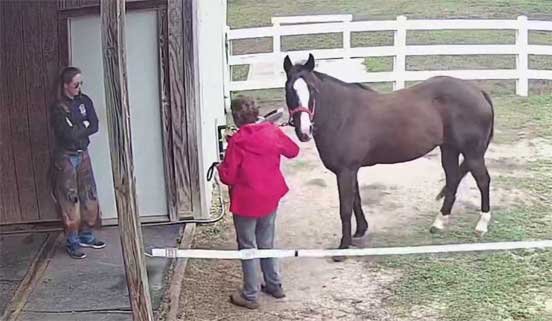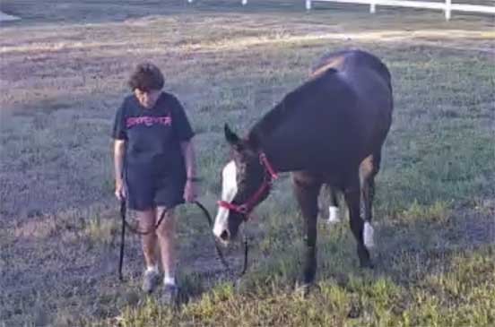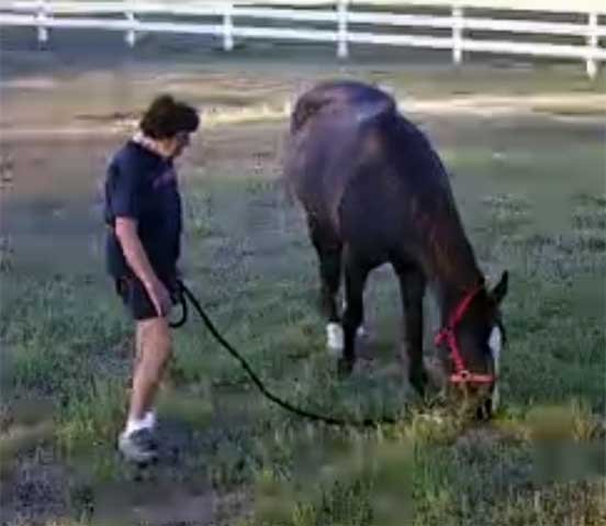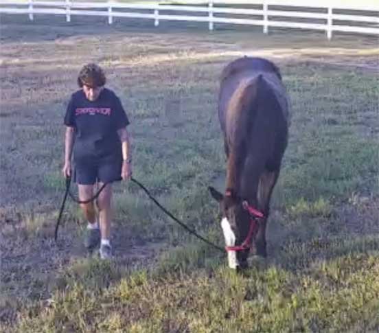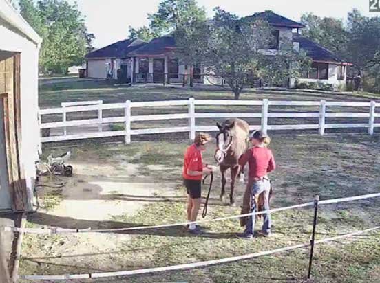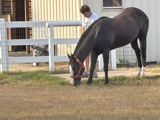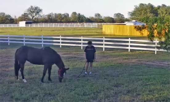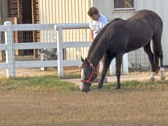 Chris grazing Sable in yard & Sophie looking on