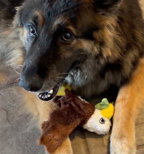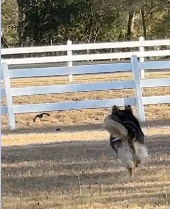 Sophie chasing birds and standoff with squirrel