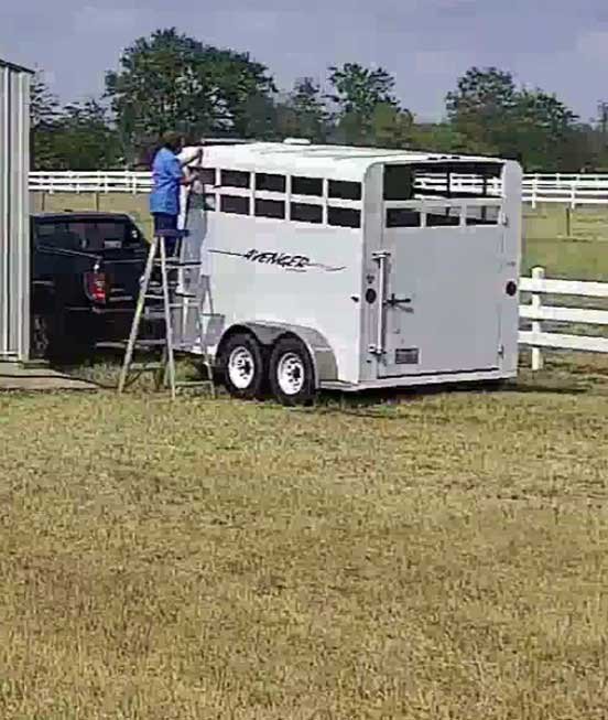 Sophie with her kids • Chris and Jake unloading hay • Chris using birthday blower to clean hay out of her Ridgeline • washing/cooling Sable100 degrees+