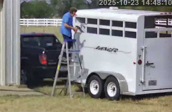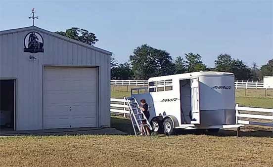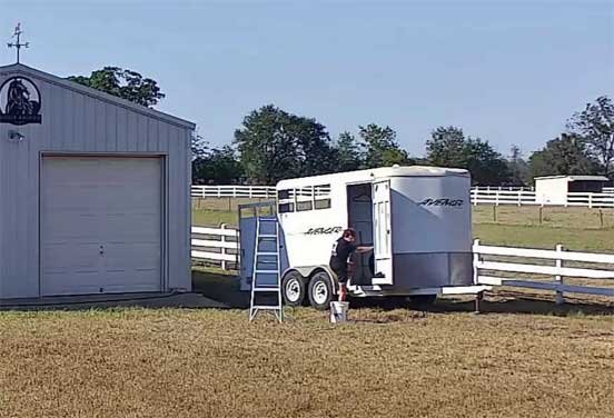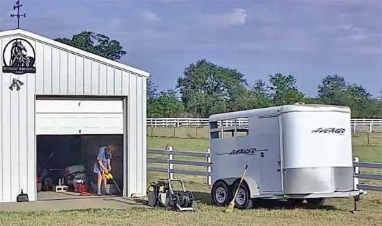 Chris cleaning her horse trailer and stable • Sophie & Martin visiting