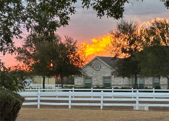 Sophie at the stable & watching Chris and Sable in the morning & from her bed in the evening • Circle tree sunset