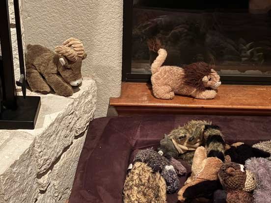 Raccoon • Chris brushing Sophie • Sable looking out