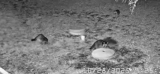Jake installed new creek cam, weeded and mowed • Raccoons • Sophie & Martin