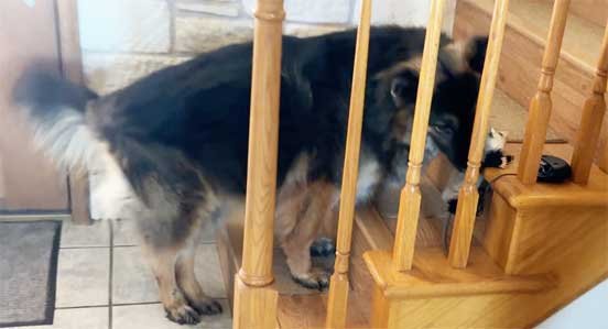 Sophie watching squirrel coming toward her and then quickly reversing • video