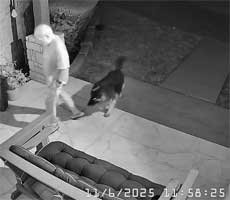 09/16/25 Chris & Mario bid on bush trim and concrete steps by back deck • Sophie paw prints