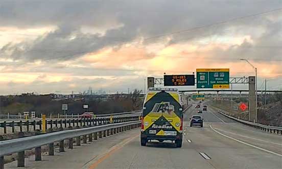 071125 CM Sophie went to Elgin to pick up sable meds from Dr. Hebel & LJS • Interesting truck convoy passing through Elgin