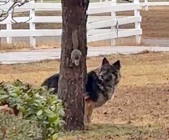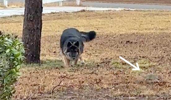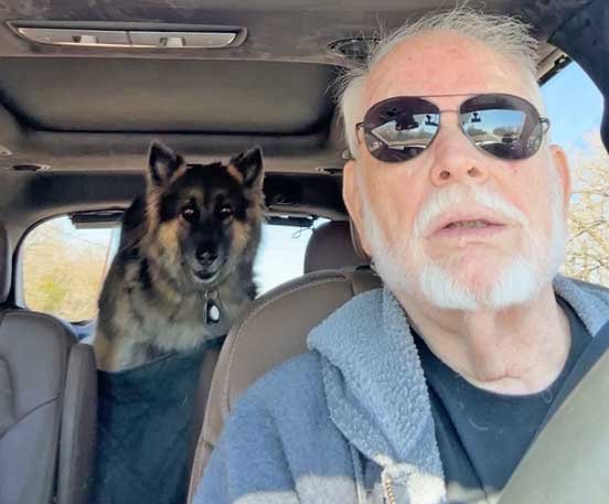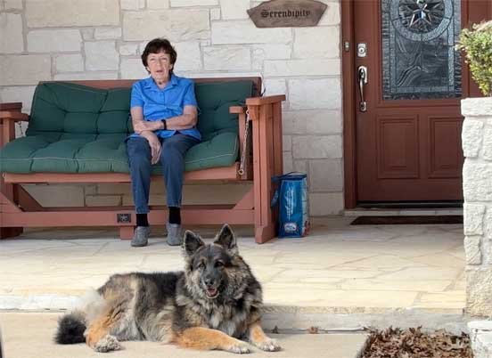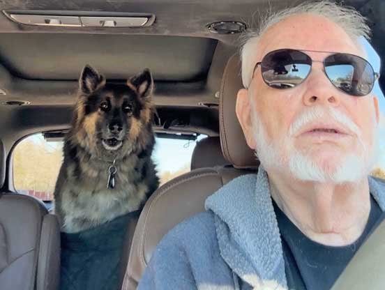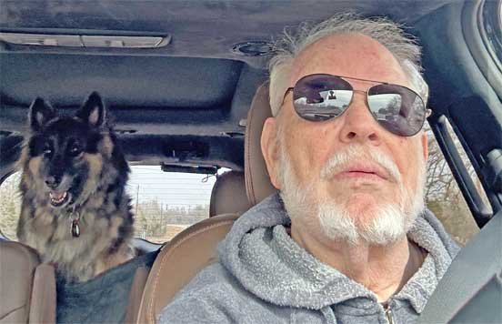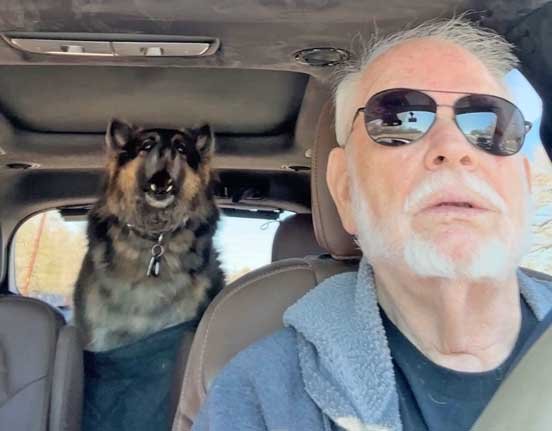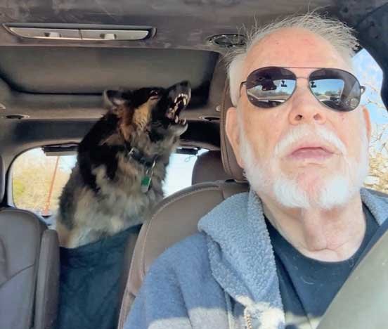 Sophie watching for Old Hwy 71 on coming traffic to bark at