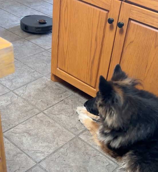 Chris bringing mail in on windy day • Sophie rolling and shaking • Sophie keeping an eye the robot vacuum