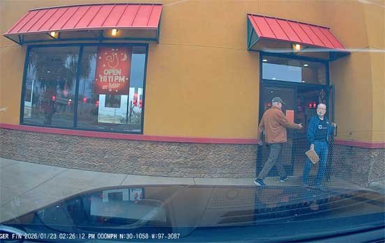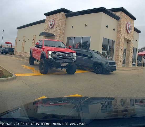 Martin & Sophie picked up fast food while Chris slept 012326 - came home by Tesla due to traffic jam on Hwy71