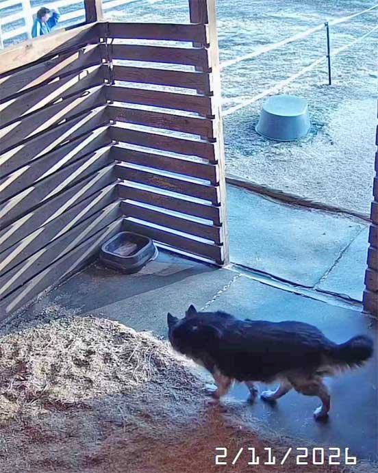 Chris and Martin taking Sophie out * Chris resting 02/04/26 • Chris in pasture 02/11/26 • Sophie in stable • Janice (neighbor) Taking our trash to street and back