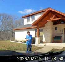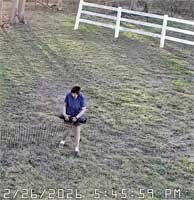 Chris & Sophie Mail & trash • Chris gathering David's armadillo trap • David picked up the armadillo trap he loaned us